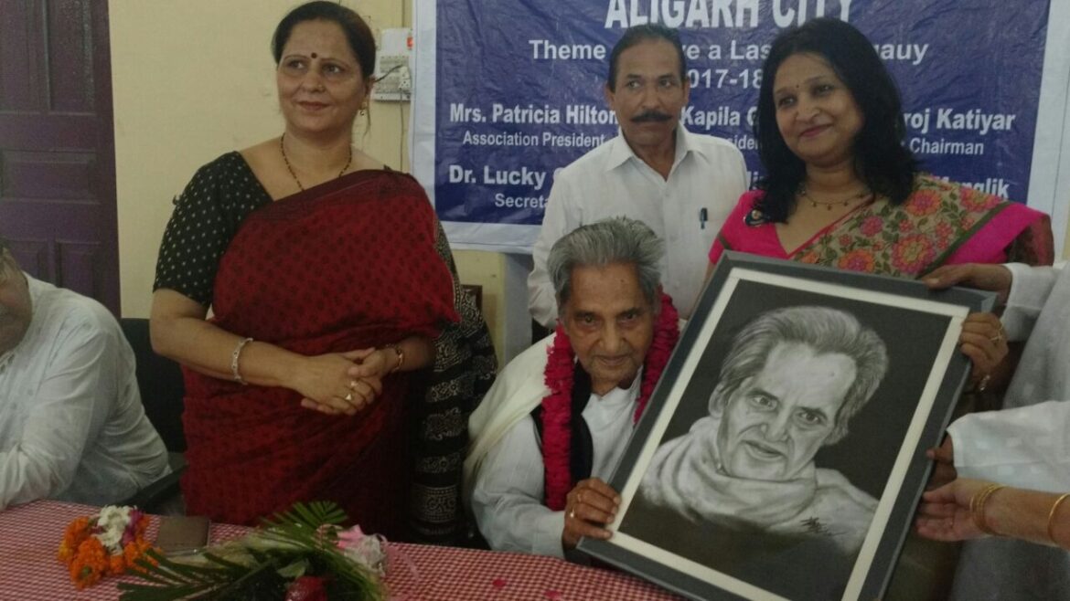 इनरव्हील क्लब ऑफ अलीगढ़ सिटी द्वारा टीकाराम कालेज मे हिन्दी दिवस धूमधाम से मनाया गया।क्लब अध्यक्ष पारूल जिन्दल ने श्री नीरज जी को उनकी हस्त चित्रित तस्वीर भेंट कर उनका सम्मान किया।