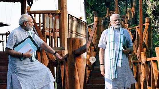 जबकि 8 नवंबर की इस फोटो में मोदी भागीरथी नदी के किनारे उत्तराखंड में दिखाई देते हैं. इस फोटो का कैप्शन था- On the banks of the pristine Bhagirathi #river, in Harsil, #Uttarakhand. #IncredibleIndia