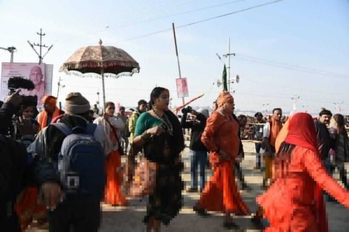 शाही स्नान के लिए उत्साह से बढ़ती हुई अखाड़ों की टोली-