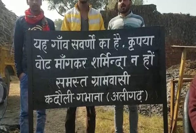 जब कि प्रदेश के गन्ना मंत्री अलीगढ़ के प्रभारी मंत्री भी हैं। किसानों की हालत खराब है और वह परेशान है लेकिन सरकार लम्बे चौड़े वायदे कर रही है। इसको लेकर पूरे गांव के लोगों ने निर्णय लेकर गांव के बाहर रास्ते पर एक बोर्ड लगा दिया है। इस बोर्ड पर लिखा है कि यह गांव सर्वणों का है, कृपया यहां वोट मांग कर शर्मिंदा न करें। इस बोर्ड को लेकर आसपास के क्षेत्रों में काफी चर्चा है।