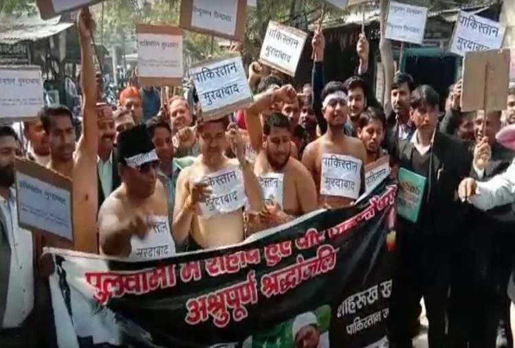 अलीगढ़ में तहसील अधिवक्ताओं द्वारा अर्धनग्न होकर पाकिस्तान और शाहरुख खान के खिलाफ प्रदर्शन किया गया। अधिवक्ताओं की मांग है कि सरकार पाकिस्तान के खिलाफ कठोर कार्रवाई करे