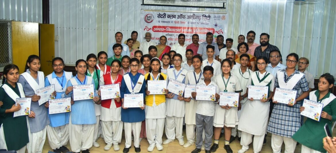 एसएमटी। अलीगढ़ रोटरी क्लब अलीगढ सिटी द्वारा आज स्थानीय धर्म समाज बाल मंदिर में हिंदी दिवस के उपलक्ष में अलीगढ के विभिन्न सीबीएससी, आईसीएससी व उत्तर प्रदेश माध्यमिक शिक्षा बोर्ड …